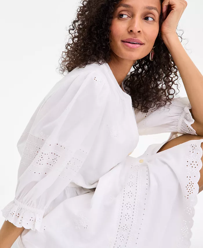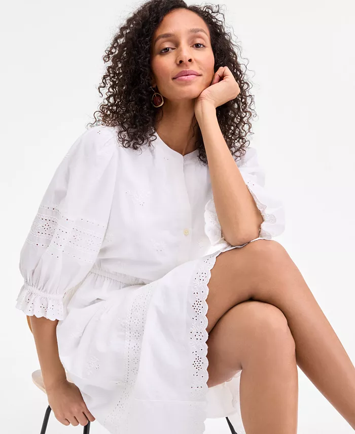 Women’s 3/4 Sleeve Eyelet Cotton Dress, Exclusively at Macy’s