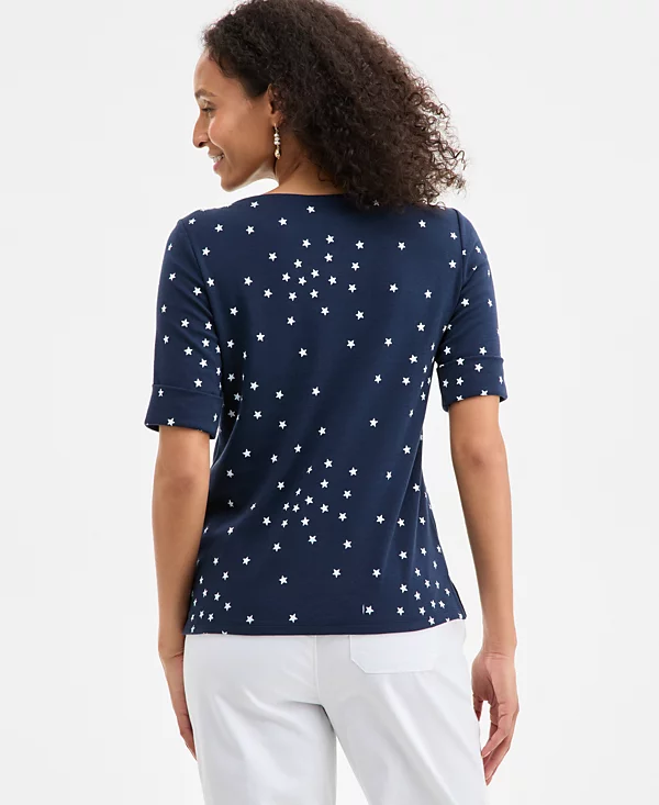 Women’s Printed Boat-Neck Elbow-Sleeve Top, Exclusively at Macy’s