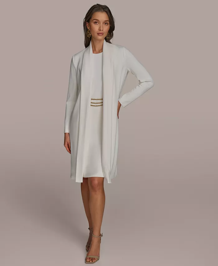 - Chain trim at front; jacket and dress set